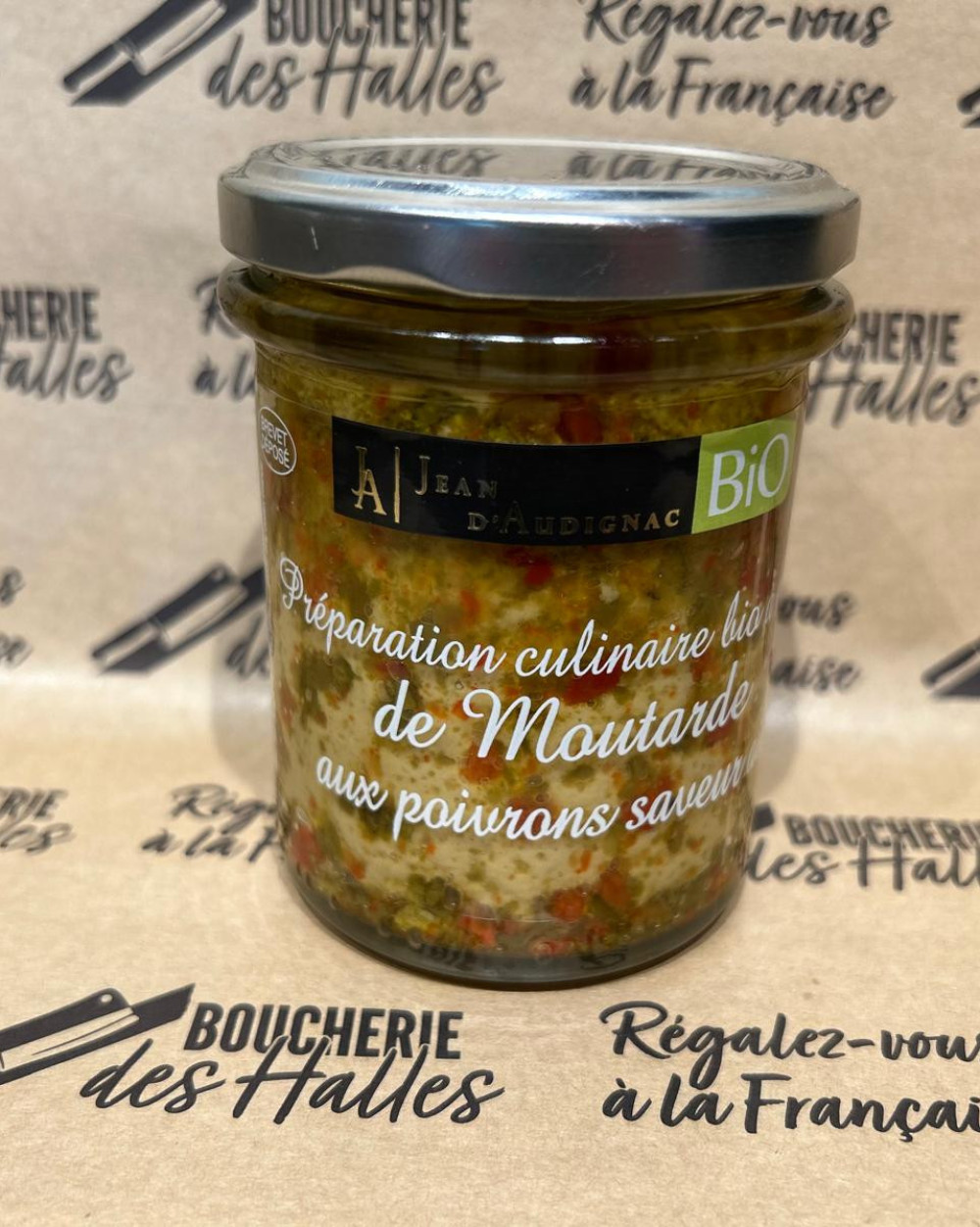 Préparez-vous à relever vos plats avec cette moutarde bio de caractère ! Une préparation culinaire audacieuse de Jean d'Audignac, mariant la force de la moutarde à la douceur et au piquant des poivrons, le tout dans une recette certifiée BIO. Idéale pour accompagner vos grillades, assaisonner vos vinaigrettes ou pimper un sandwich.