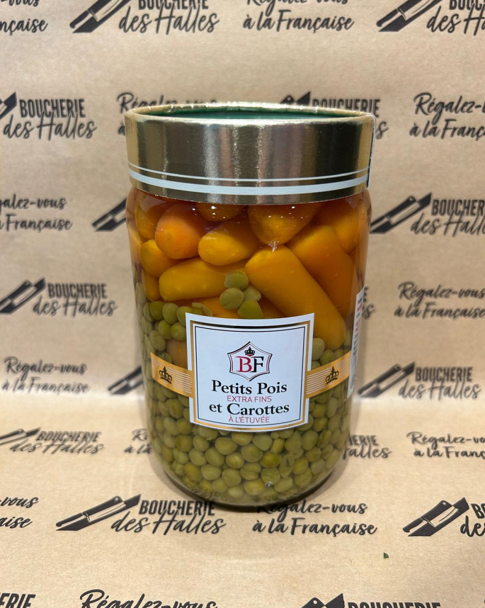 Le mariage classique et intemporel des Petits Pois Extra Fins et de petites Carottes, préparé à l'étuvée pour conserver tout leur moelleux et leur saveur. Une garniture gourmande et colorée, idéale pour accompagner une blanquette de veau, un poulet rôti ou un poisson.